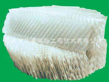 塑料規(guī)整填料具有重量輕,通量大、壓降低、比表面積高、易更換等優(yōu)點(diǎn)。絲網(wǎng)波紋填料由聚丙烯與聚丙烯腈線混合編織網(wǎng)組成。波紋填料可采用聚丙烯PVDF板,為提高傳質(zhì)效率,板上可開孔。塑料規(guī)整填料有:板波紋填料、孔板波紋填料、絲網(wǎng)波紋填料和斜波紋填料等。